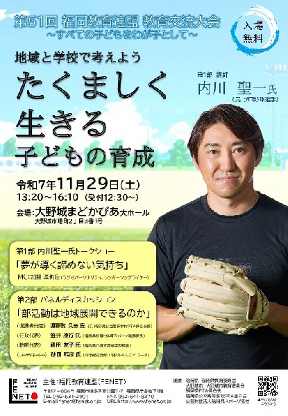 変化の激しい現代だからこそ、より良い教育を創造するためには、日本人が大切にしてきた道徳的価値や文化を改めて見直し、次世代へしっかりと受け継いでいくことが求められているのではないでしょうか。私たちはこの教育交流大会を、保護者と教師、地域の方々がこれからの教育について共に考えを深める場として、有意義なものにしたいと考えています。「教育再興を福岡の教育から」これが私たちのテーマです。この教育交流大会を契機に、私たち福岡教育連盟の活動をご理解いただくことができれば幸いです。福岡県の教職員の方々をはじめ、他県の教職員の方々、地域の皆様方、多くの参加をお待ちしております。